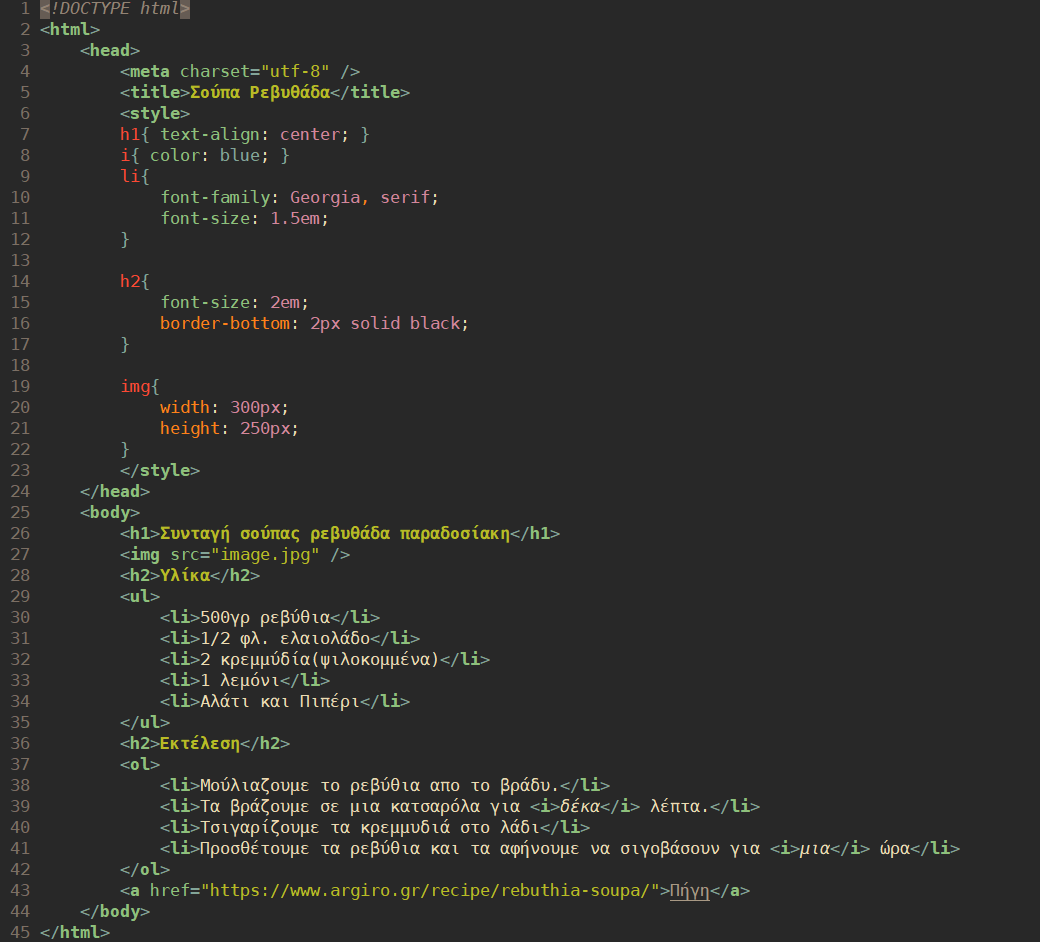 - Πληκτρολογούμε το ακόλουθο κώδικα