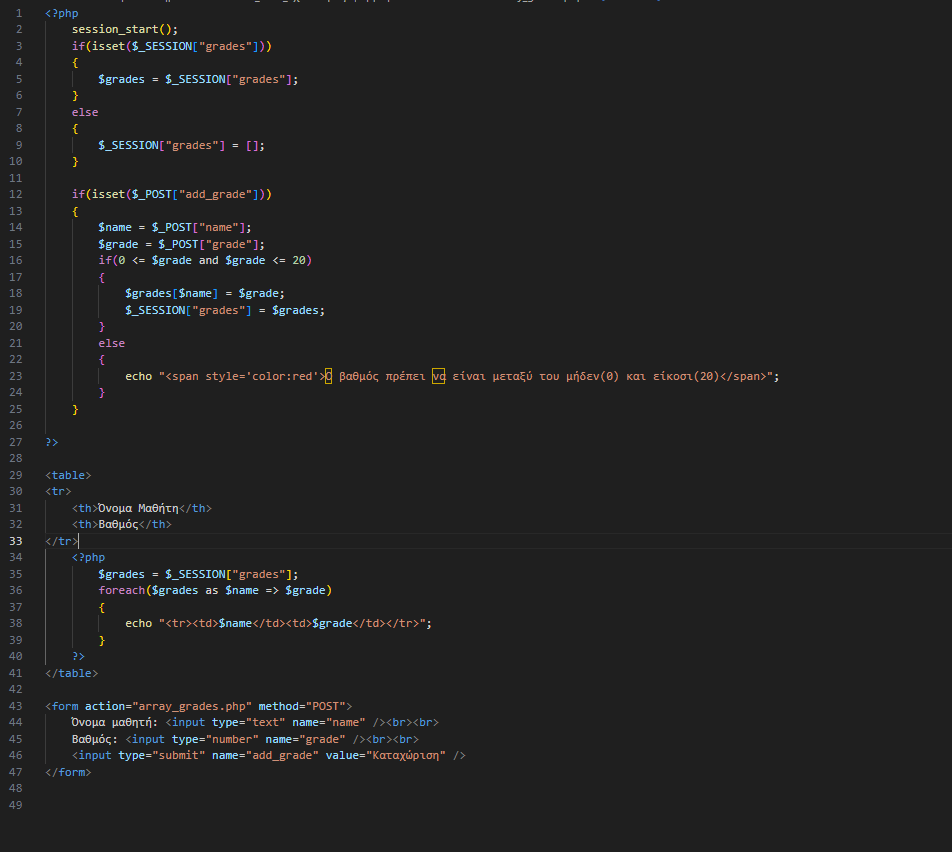 3. Αποθηκεύούμε και εκτέλουμε τον κώδικα